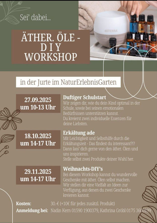 Treffpunkt: ist in der Jurte im NaturErlebnisGarten jeweils ab 17.30 Uhr